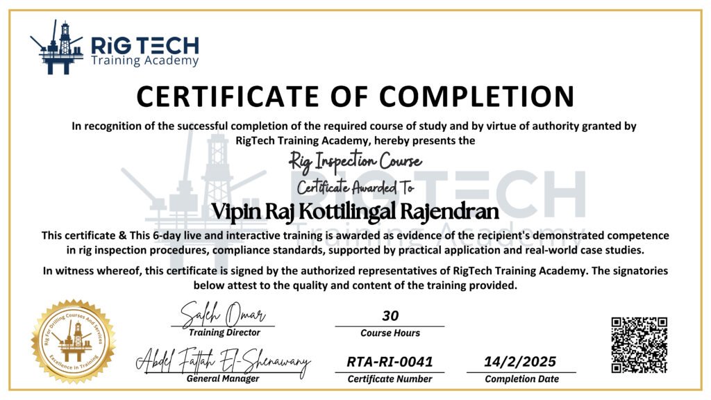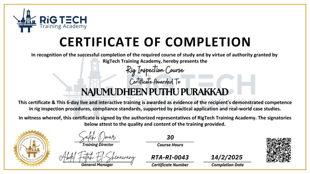 Rig Inspection Certificates Stalin Uzhunnan Moattaz Mohamed Abouelhassan Maneesh Nair Ajitha Kumari Muhammad Asif Nafa Abbas E Alrowaie Vishnu Ashiq Abdulla Kattam Ashfaq Nelloor Shanavas Thevar Kalathil Sanil Karatha Vipin Raj Kottilingal Rajendran Shehas Kalliparambil Saidu NAJUMUDHEEN PUTHU PURAKKAD Chemparathical Sonichan Amal Nirmal Ravindran Rajeev Kannatt Mukundan Roni Mathew Varghese Sajan Varghese Karipolil Suhail Muhammed Onathukkattil Sajad Mohammed Ismail Rony Lesbata Mostafa Mohamed Mohamed Philip Fernandes Vinoth Ponnusamy Kumaraguru Ponnusamy Veerappan Moamen Osama Fathelbab Omar Hamdy Ali Ahmed Ali Mohammed Nour Ahmed Abu Hawa Ahmed Mohamed Elbadry Osama Ahmed Abdelghafar Shalaby