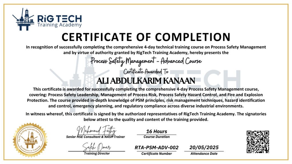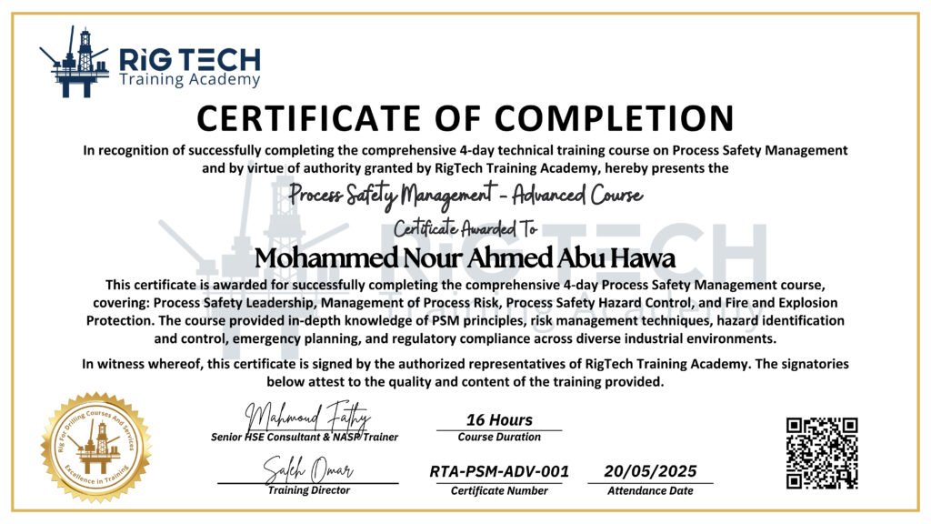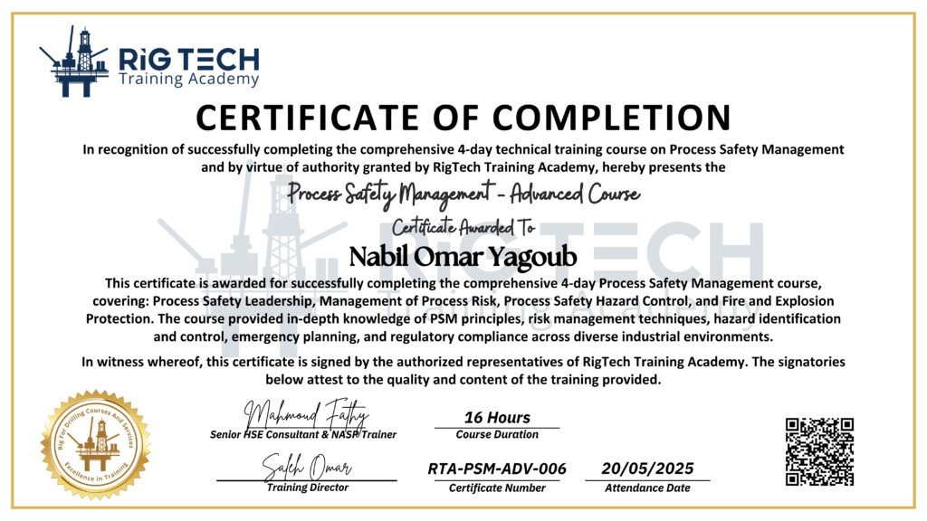 Process Safety Management Certificates